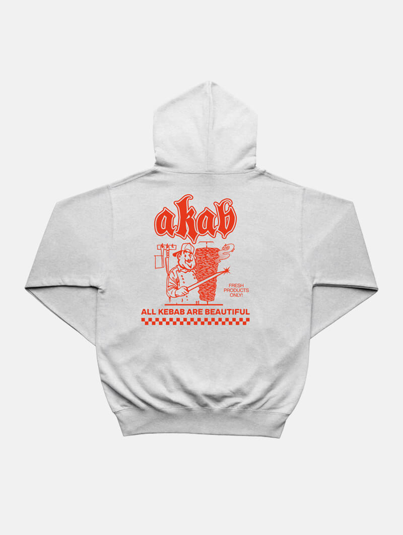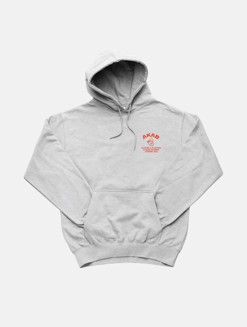Sweat à capuche à coupe large en coton biologique. Sérigraphie manuelle à l’avant, côté coeur, et à l’arrière.